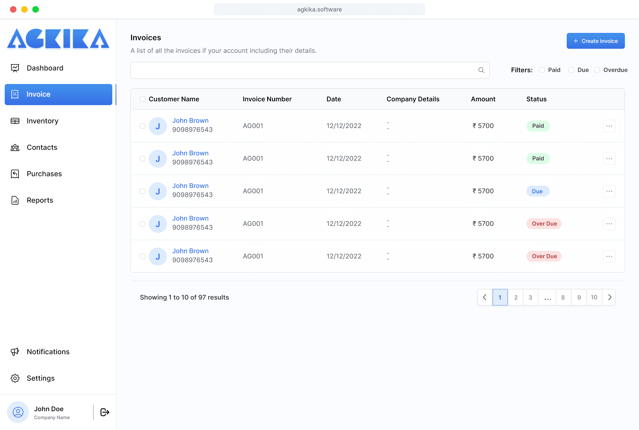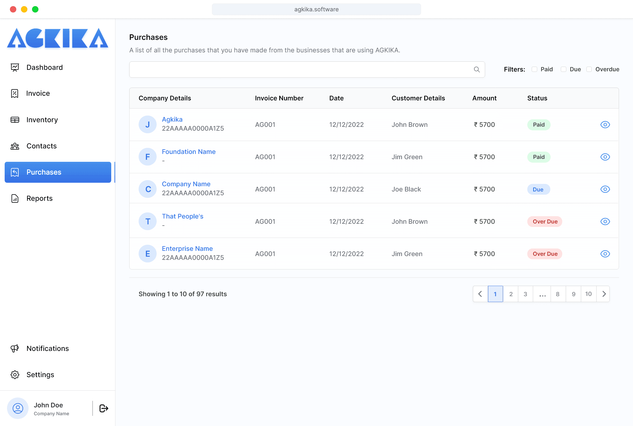 - All of your purchases invoices from an Agkika Business User organized into one place. Purchases from other vendors tracking is not supported.
